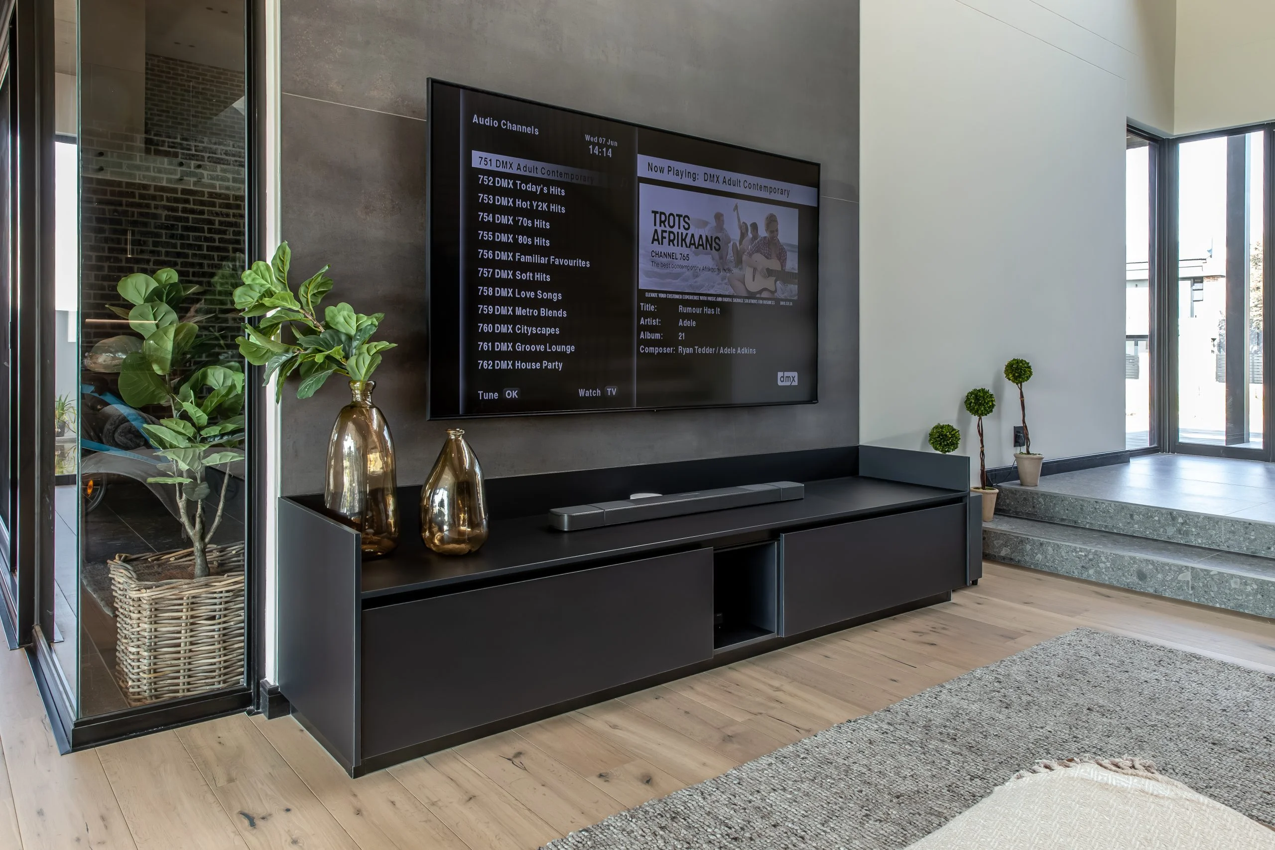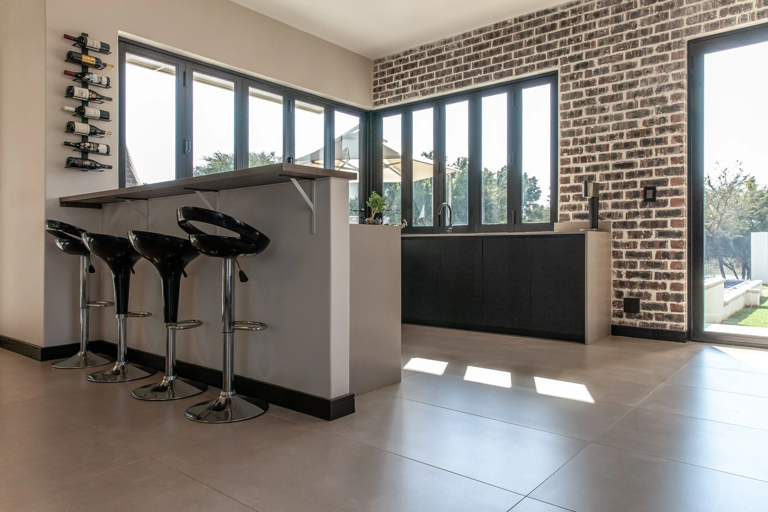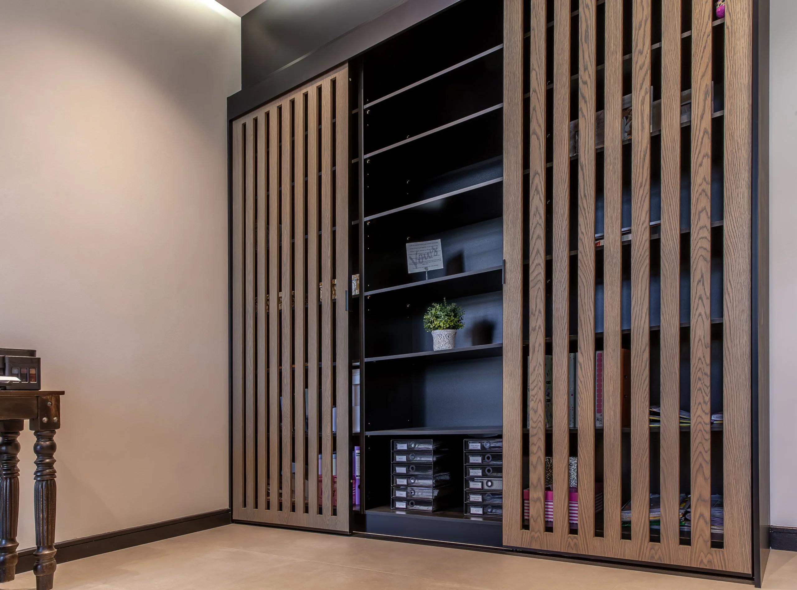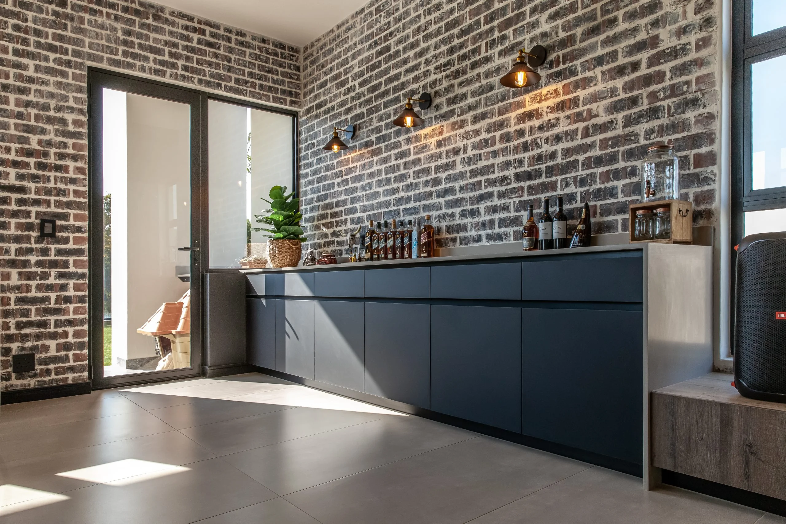Together with an interior designer, we transformed a kitchen that simply didn’t work for the client, into one that functions and makes their lives easier! This modern kitchen uses elements of Seno Black Matt and Oak Historic Kent as well as Oak End Grain to give it a unique look, while the PG Bison Folkstone Grey ties everything together seamlessly. We used a variety of countertops to achieve the final look which includes Caesarstone Black Tempal and Wild Storm, Soda Lifestone, and Infinity Stone Milan. The entire home was designed using Blum’s BLUMOTION Onyx Tamdenbox runners and tip-on hinges as well as grip handles. The use of textures really give an inspired look and feel. For an extra touch of magic, we added Smeg’s Dolce Range to accompany their integrated appliances.