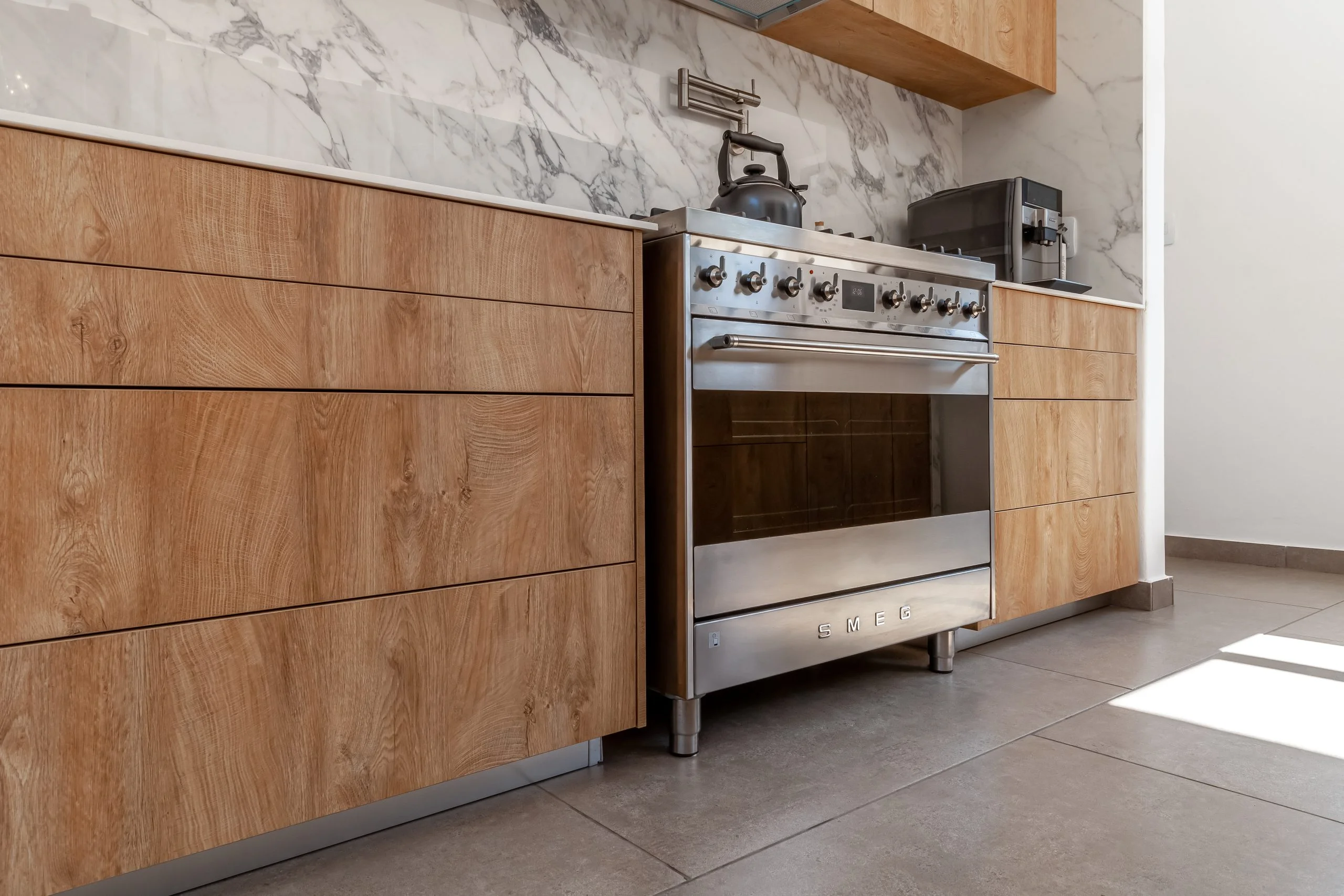 The vision for this kitchen was stone, and stone is what sold the client at the end of the day! To ensure the client connected with her new kitchen, a visit to the slab yard was arranged to ensure she got the perfect stone for her new kitchen!